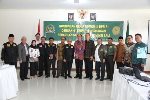 Denpasar-Humas, Kunjungan Kerja Komisi III DPR pada masa persidangan III tahun sidang 2016-2017 yang kali ini dipusatkan di Pengadilan Tinggi Denpasar dengan Jajaran 4 (Empat) Lingkungan Peradilan yaitu Pengadilan tinggi denpasar, Pengadilan Agama denpasar , Pengadilan Tata Usaha Negara denpasar dan Pengadilan Militer III-14 denpasar. kunjungan kerja yang dilaksanakan pada tanggal 10 maret 2017 di denpasar . Dalam Hal Ini Komisi III DPR meminta Penjelasan Mengenai Budzeting Tahun Anggaran 2017, dan Fungsi Pengawasan di lingkungan Peradilan.
