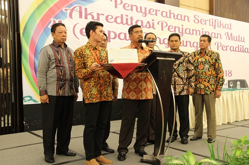 Demikian kata-kata yang diucapkan oleh Ketua Mahkamah Agung, YM Prof. DR. H. Muhammad Hatta Ali, SH., MH saat meluncurkan aplikasi e-court di Hotel Novotel, Balikpapan, Jum’at (13/07/2018) kemaren.