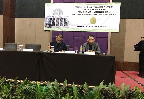 Bekasi—Humas: Untuk mempersiapkan tenaga pelatih yang akan memandu pelatihan-pelatihan tentang aplikasi pengadilan elektronik (e-court) di semua lingkungan peradilan, Mahkamah Agung menyelenggarakan pelatihan untuk pelatih (Training of Trainers—ToT) aplikasi e-court.